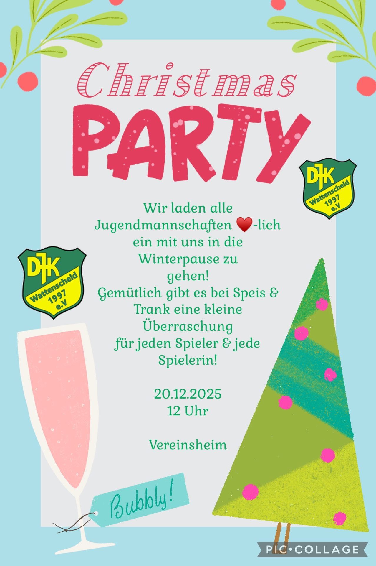 Am 20.12.2025 ab 12:00Uhr findet unsere Weinachtsfeier statt, es sind alle eingeladen.